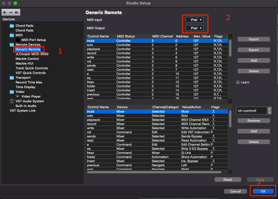 Cubase Fader Controller IOS App Settings