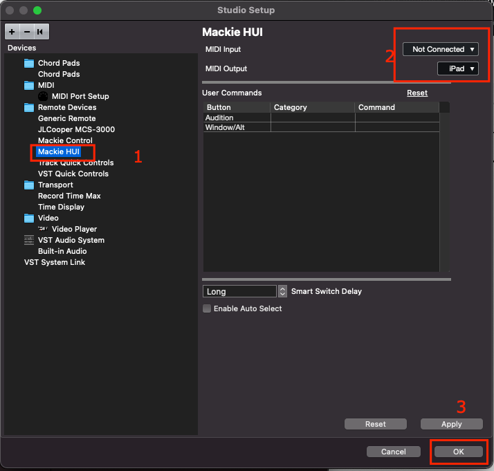 Cubase Mackie HUI page. Please make sure to keep Mackie HUI not connected.